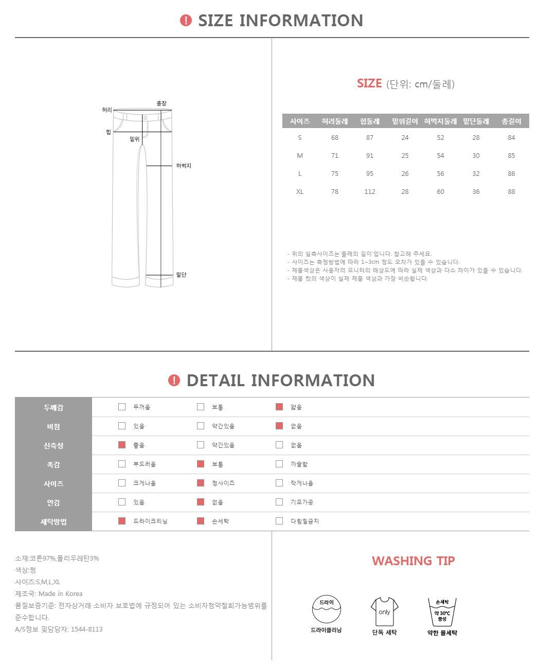 기본을 살려주었으며, 허벅지 라인 중심으로 들어간 은은한 워싱은