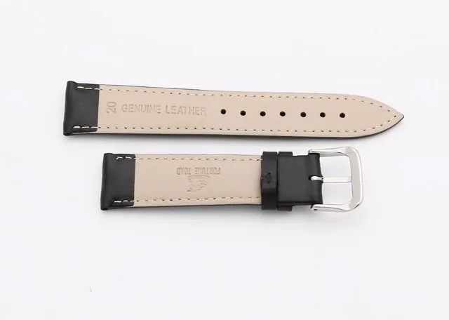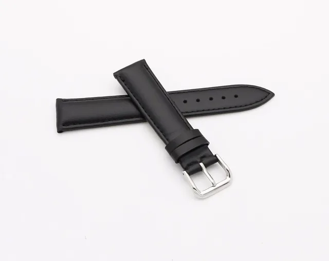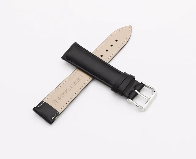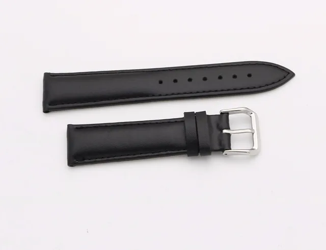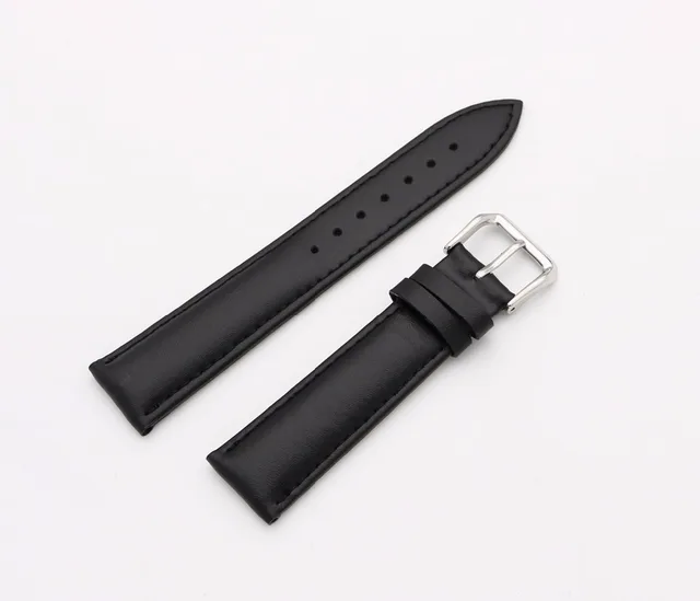 | [해외]14 16 18 20 22 24 미리메터 남성 레이디 정품 소 가죽 블랙 클래식 부드러운 손목 시계 밴드 스트랩 벨트 실버 광택 핀 버클 |