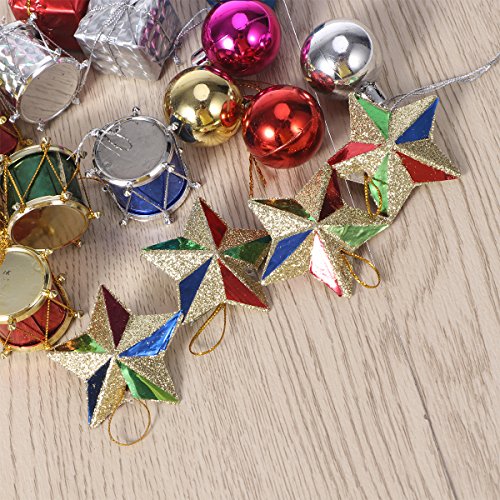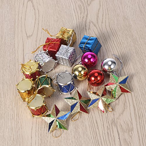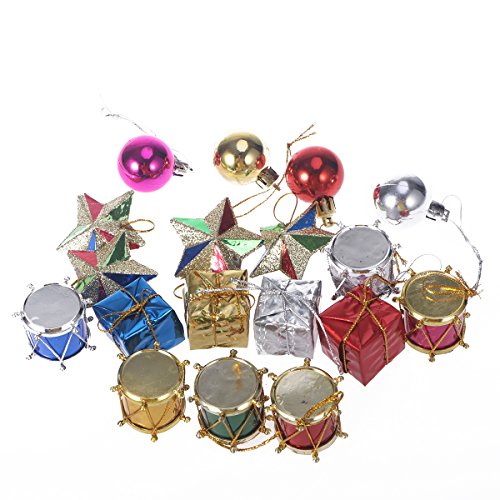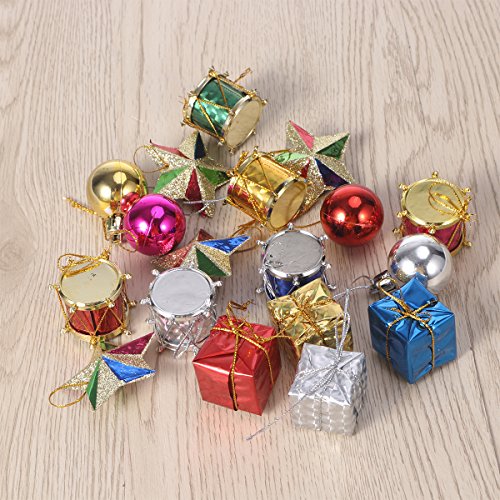 Tinksky 18pcs Colorful Glitter Mini Drums Gifts Stars Balls Christmas Tree Ornaments Hanging Decoration Pendant Christmas Holiday Wedding Party Decor
