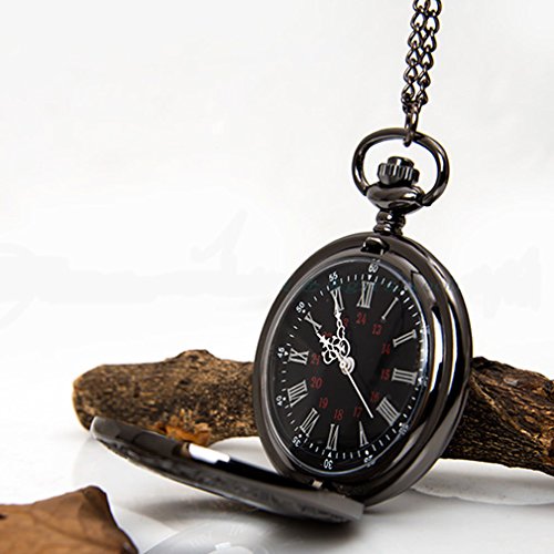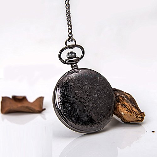 -. Title : Caleen6 Women's Pocket Watches Vintage Pattern Black Sculpture See-through