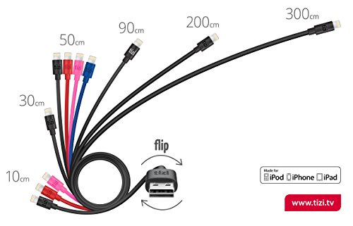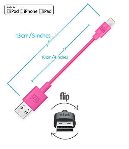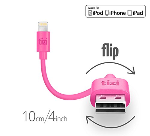 equinux tizi Flip (4 inch, pink) lightning cable - reversible tizi flip USB Lightning charging cable, officially Apple certified as "Made for iPhone, iPad und iPod" (MFI)
