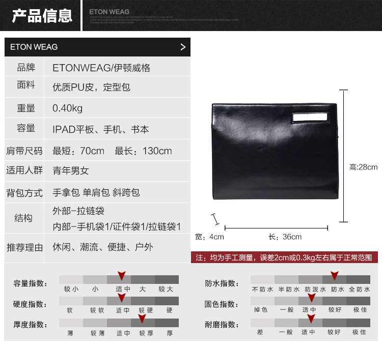 Internal Structure: zipper pocket cell phone pocket document bag