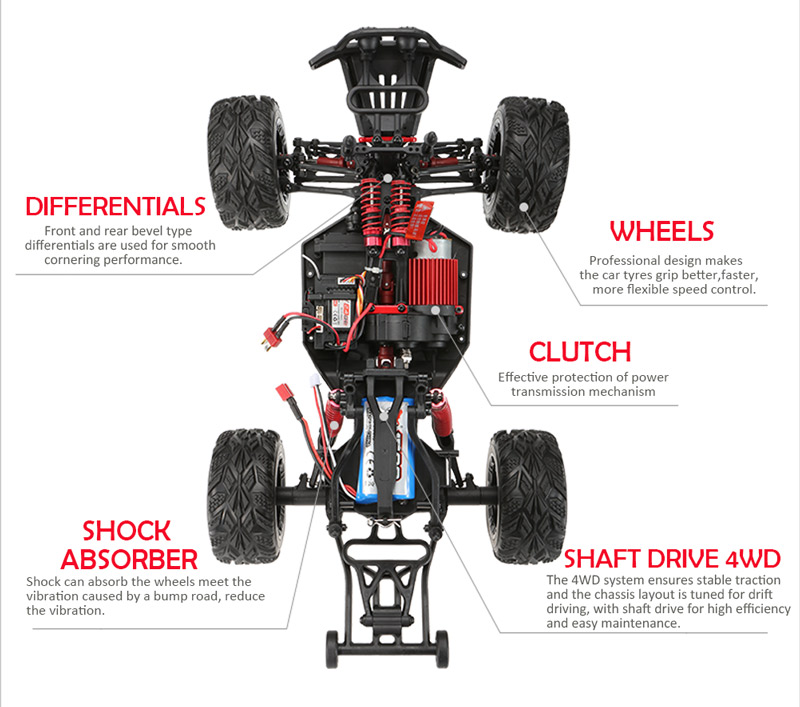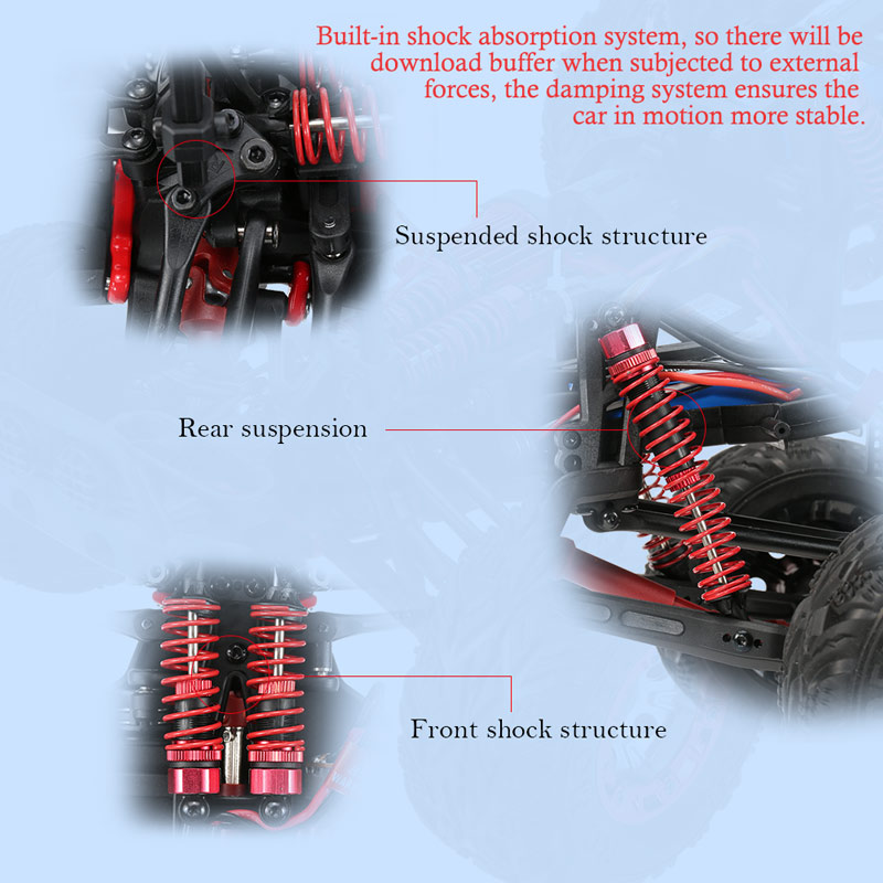 High quality car body with 4-wheel shock absorbers and proportional steering function.