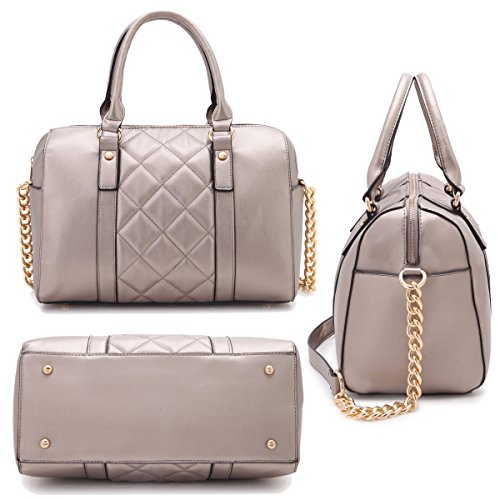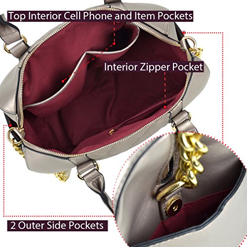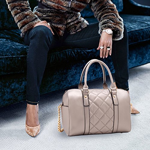 -. Feature : ❤ MMK COLLECTION BRAND NAME FEEL:USA Brand (Imported) ~ This Specious Designer Barrel Style Women Crossbody Bag using high-quality Faux Leather, with all stitches in neat and orderly rows. We have always been strict with both the choosing of materials and processing of products, in other words, we are better at material selection and superior in product making, taking every detail into consideration for the dear customers to meet as much as possible their own styles. / ❤ SPECIOUS TWO-TONE COLOR DESIGN AND SERVICE: High Quality Leather-Like Material with Trendy Natural Solid Color, Combine with Fashion Gold Chain and Free Designer Matching Wallet. This tote crossbody bag perfectly matches outfits like jeans and boots. Our goal is to ensure that you're 100% satisfied with your purchase right out of the box. If you're not satisfied for whatever reason, we will gladly accept your return provided that you request authorization / ❤ EXCELLENT SIZE FOR ANY OCCASIONS: Free Matching Wallet fits in most smartphones, including iphone 7 plus(Size: 9.25"x6"x1") + Bag Approx Size: 13"W x 8.5"H x 6.5"D + Adjustable and Removable Shoulder Strap to make you feel comfortable when putting the bag on your shoulder. This Tote is extremely roomy to fit most of your personal belongings like ipad, laptop, cellphones and makeup This Designer Tote is good for any occasion: Casual, official, School and so on.. / ❤ MULTI-POCKETS TO CONVENIENT YOUR DAILY LIFE: Top zipper closure + Fully-Lined Interior + Semi Quilted Design + Flat Bottom Design with Gold Tone Studs + Interior Back Wall Zipper Pocket. + Interior Front Wall Open Top Cell Phone and Item Pockets + Adjustable and detachable gold chain shoulder strap + Gold Tone Hardware, accents, studs and zipper pulls Multi interior pockets to keep your necessities in an orderly way / ❤ LIMETED EDTION - Macro M.Kelly Handbag Collaborative Design (This's not associated with brand)