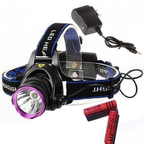 WindFire® 2000 Lumens CREE XM-L T6 U2 LED 3 Modes Design Outdoor Sport Headlamp 18650 Rechargeable Battery Head Light Torch Flashlight with Charger and 2 X WindFire 4000mah Rechargeable batteries For Outdoor Hiking, Riding, Camping, Climbing etc..