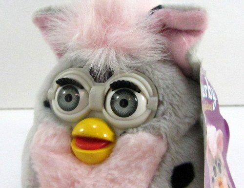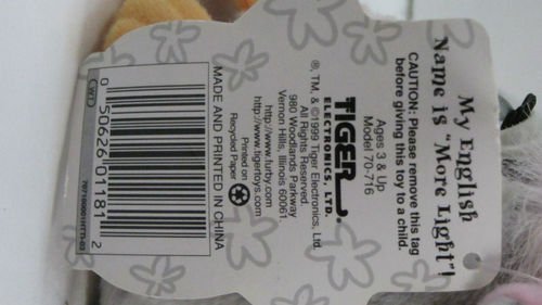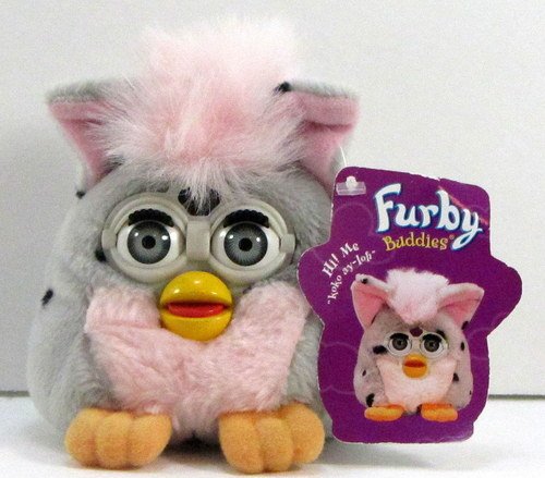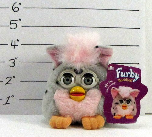 -. Title : Vintage 1998 "More Light!" Furby 5" Plush - Pink Grey - Tiger Electronics
