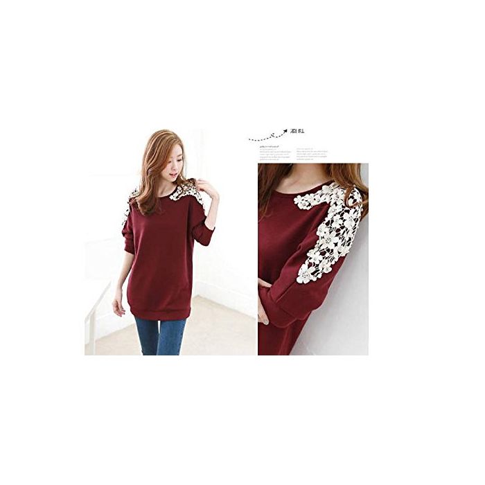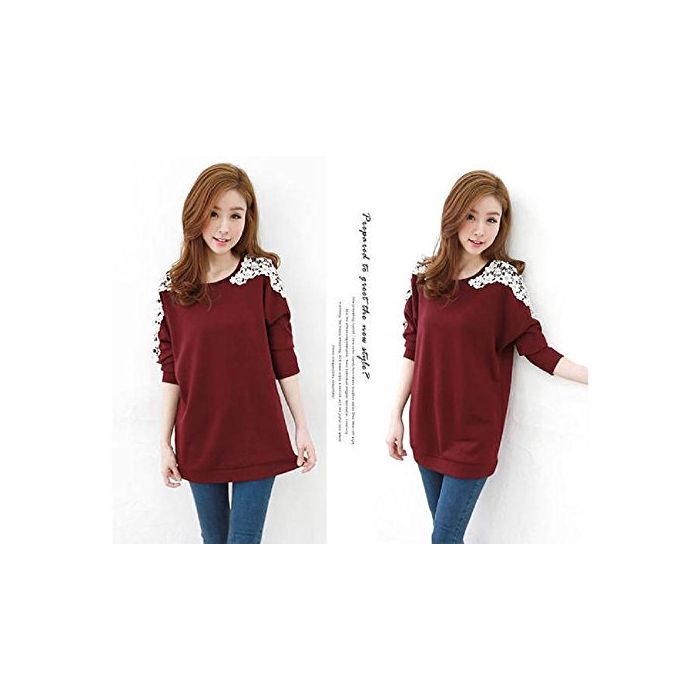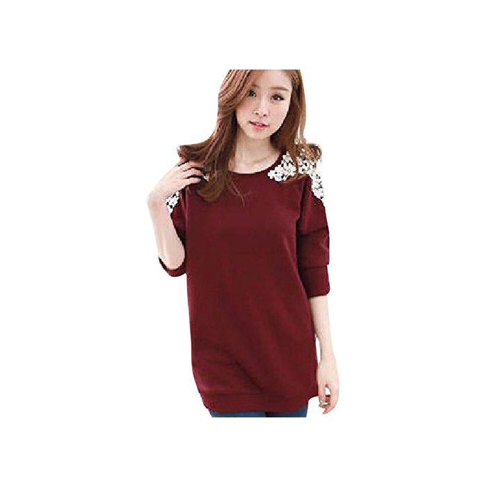 원본상품명: トレナ レディス おしゃれ 花柄 レス 切り替え 刺 長袖 プルオバ 肩 フラワ モチフ ゆったり シンプル (XL, 酒紅色)