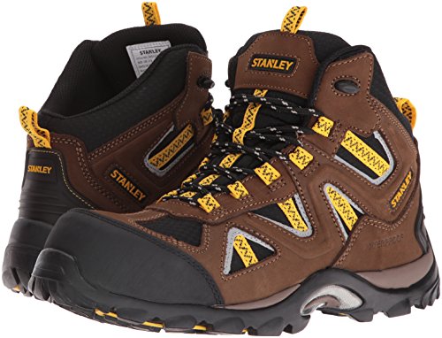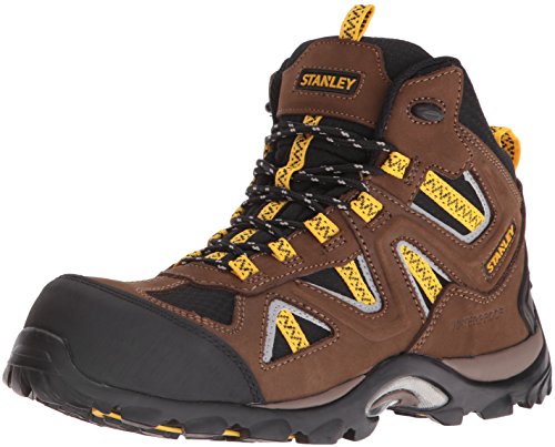 Studio : Stanley Footwear Publisher : Stanley Footwear Binding : Apparel Product Description Stanley trench composite toe boot is extremely versatile, lightweight and ready for all work surfaces and 24/7 jobsites. Safety specifications include astm f2413-11, comp toe 1/75, c/75 and electric hazard. Durable outsole is slip and oil resistant with tpu arch support and flexible eva midsole for shock absorption. Waterproof nubuck leather upper features waterproof membrane with mesh inserts for breathability and reduced weight. Soft foam padded ankle collar and tongue for superior comfort. Added performance results from cement construction outsole, rubber toe bumper overlay, loop lacing for secure fit, removable pu insole for cushioning and enhanced upper reinforcement with high vis and reflective cross tape stitching. Definitely a 'grand slam' contender. 0