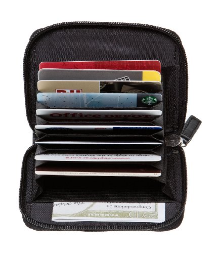 -. Feature : Actual Size: 4-1/4" x 3" / Women's Leather ID Accordion Wallets / 100% durable, supple full grain leather / Holds at least 9 credit cards. Convenient outer ID display / Elastic cash band/Zipper enclosure for change