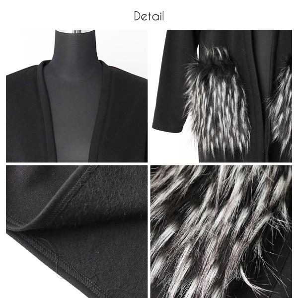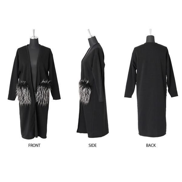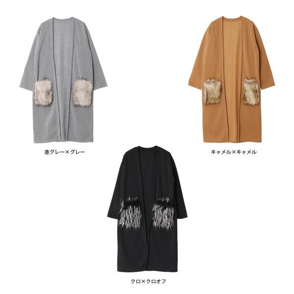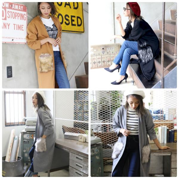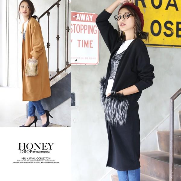 最終入荷!!残りわずか早い者勝ちです!!■リッチなファーポケット◎裏起毛ロングカーディー■ボリュームのある毛足長めのファーポケットリッチなアクセント。裏起毛素材で、保温力もたっぷりなぬくもりある一枚。カーディガンとしてはもちろん、ライトアウターとしても活躍しそうな予感です。すっきりノーカラータイプでコーディネートしやすく、合わせるインナーを選びません。ロング丈で一枚でサマになるデザイン。車移動などの本格アウターではトゥーマッチなシーンにもおすすめです。モデル:160cm伸縮性:あり裏地:なし 裏起毛透け感:なし生地の厚さ:中厚【サイズ】 着丈/105cm 身巾/53cm 裾巾/58.5cm 袖丈/48.5cm 【素材】 本体/ポリエステル100% ファー/ポリエステル50%、アクリル50%