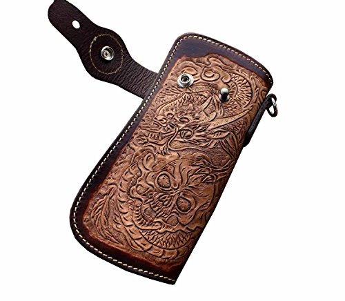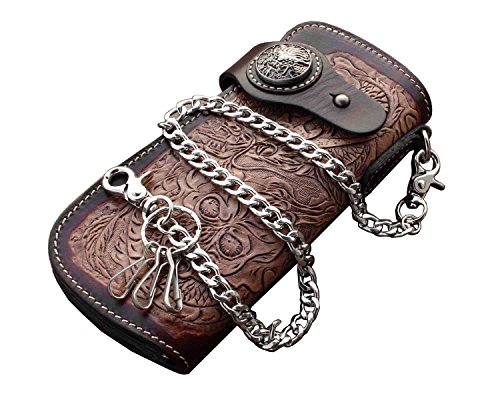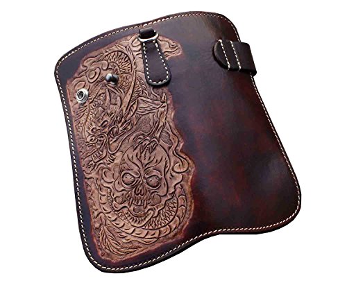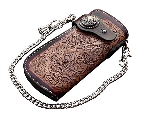 -. Title : Dragon Skull Motorcylce Biker Cow Leather Card Holder Handmade Wallet With Chain L66