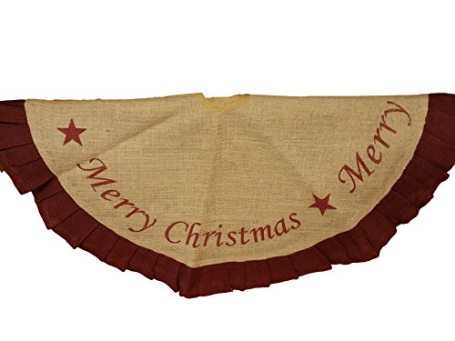 Burlap Ruffled Christmas Tree Skirt Burgundy Stenciled (Merry Christmas, 36 Inch)