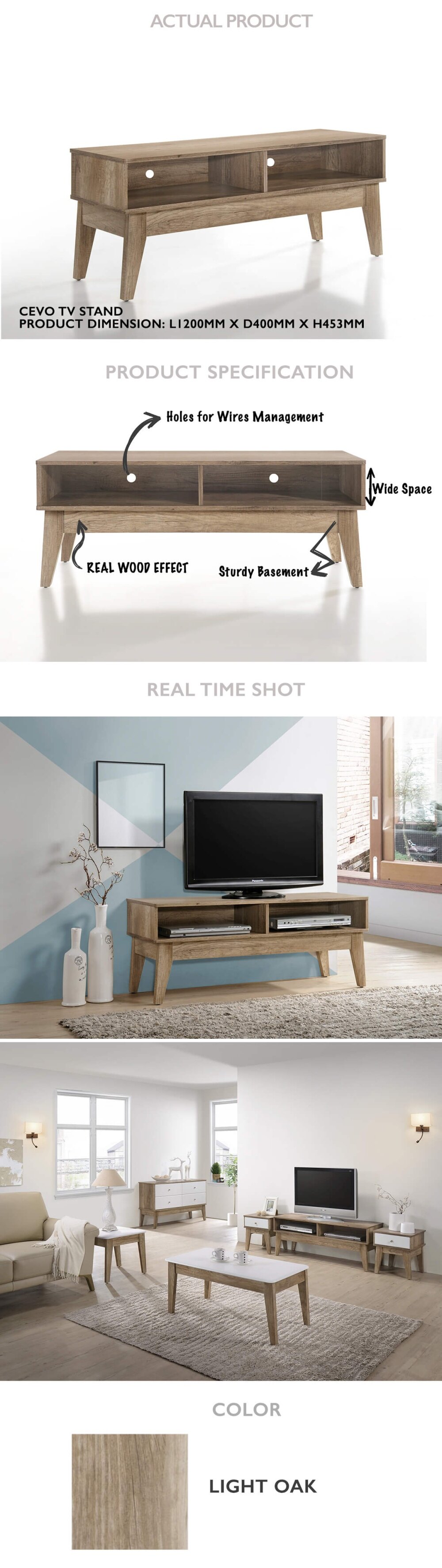 This TV stand is designed with minimalism with clean look, to add the sophisticated element to your living room. Light oak colour is cleverly used to blend in with practically any TV units to enhance your entertainment experience.