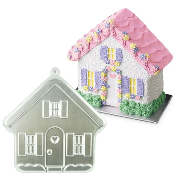 品名:房屋?创意卡通蛋糕模具产地:中国材质:铝合金阳极氧化规格:23cm*8cm*22cm适用:?海绵蛋糕,使用前在模具里面刷一层油(重要!好脱模)