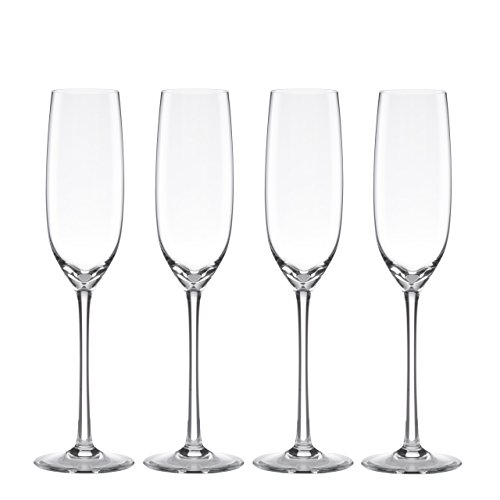 Amazon.com Review Invoking the spirit of Italian vineyards, Lenox has created the Tuscany Classics line of stem- and barware with elegant proportions and beautifully balanced shapes. Subtly tapered and comfortable to hold, these classic champagne flutes are crafted from full-lead crystal and sound a lovely ringing note during a toast. Lenox's structure features a substantial seam between bowl and stem, so you can hold the glass stably without warming the contents. The foursome comes with a lifetime replacement policy. Washing by hand is recommended. --Emily Bedard 0