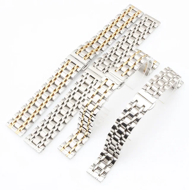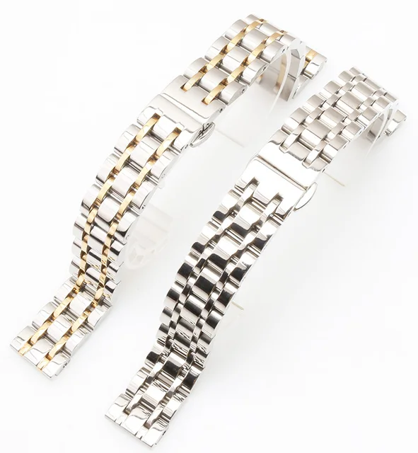 | [해외] 최고 실버 스테인레스 스틸 손목 스트랩 팔찌 솔리드 링크 시계 액세서리 브랜드 럭셔리 시계 남성 여성 16 미리메터 20 미리메터 |