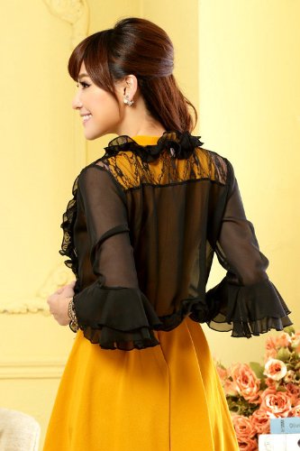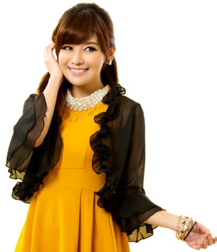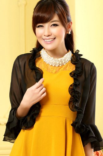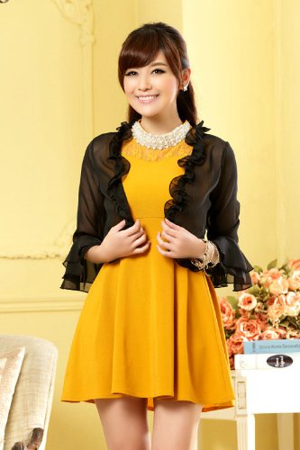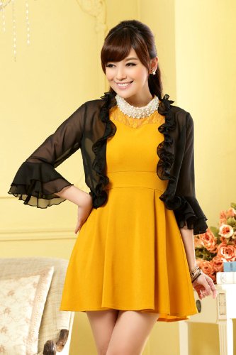 -. Title : (アンフィニ) infini シースルーフリルボレロ 7分袖 シフォン 黒 白 LL 3L 4L 大きいサイズ フォーマル パーティー レディース