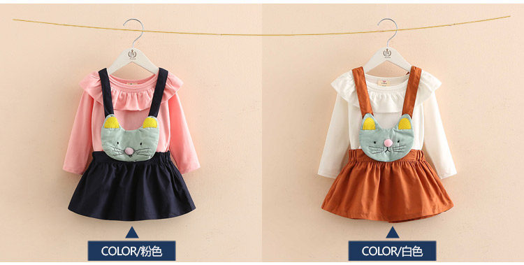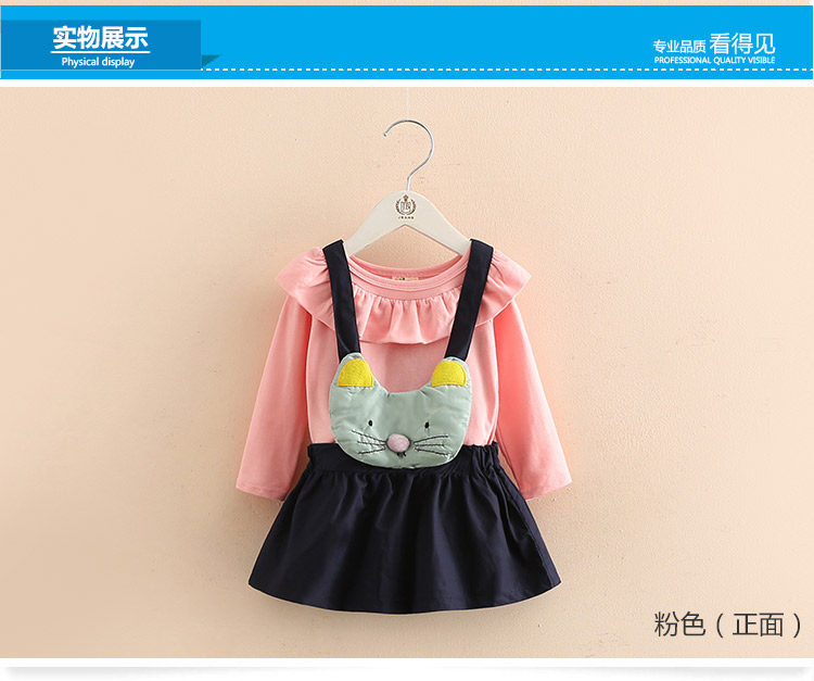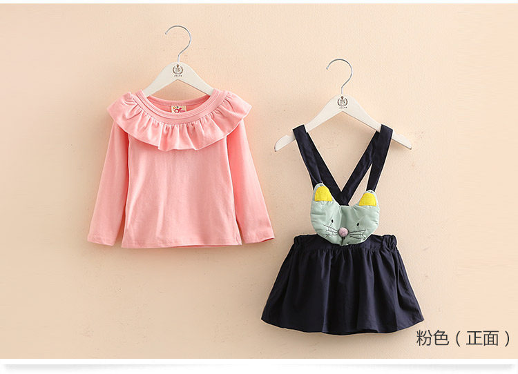 春装新款女童童装 宝宝儿童长袖T恤背带裙子套装