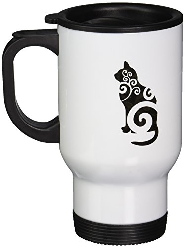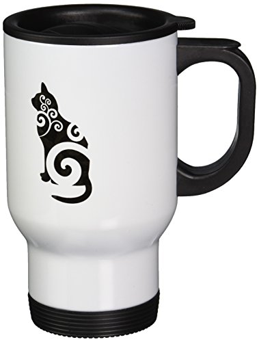 3dRose Swirly Cat Silhouette Black Stainless Steel Travel Mug, 14-Ounce