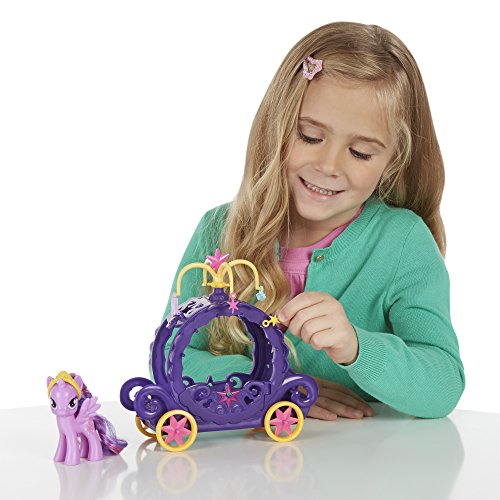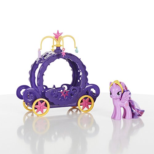 Princess Twilight Sparkle is ready to roll the royal way. She needs you to style her long, lustrous hair and crown her with her tiara. Then she needs to survey her kingdom, and that’s what her Charm Carriage is for. Her fancy carriage comes with 4 friendship charms to decorate it with. With you in charge, wherever the carriage takes her, your Princess Twilight Sparkle figure is sure to arrive in style. My Little Pony and all related characters are trademarks of Hasbro.Feature