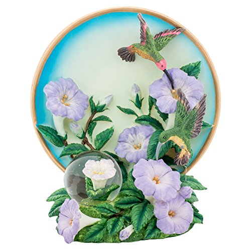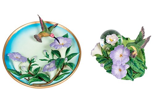 Hummingbird Flower 6 inch Plate and Miniature 45MM Water Globe Figure Set of 2