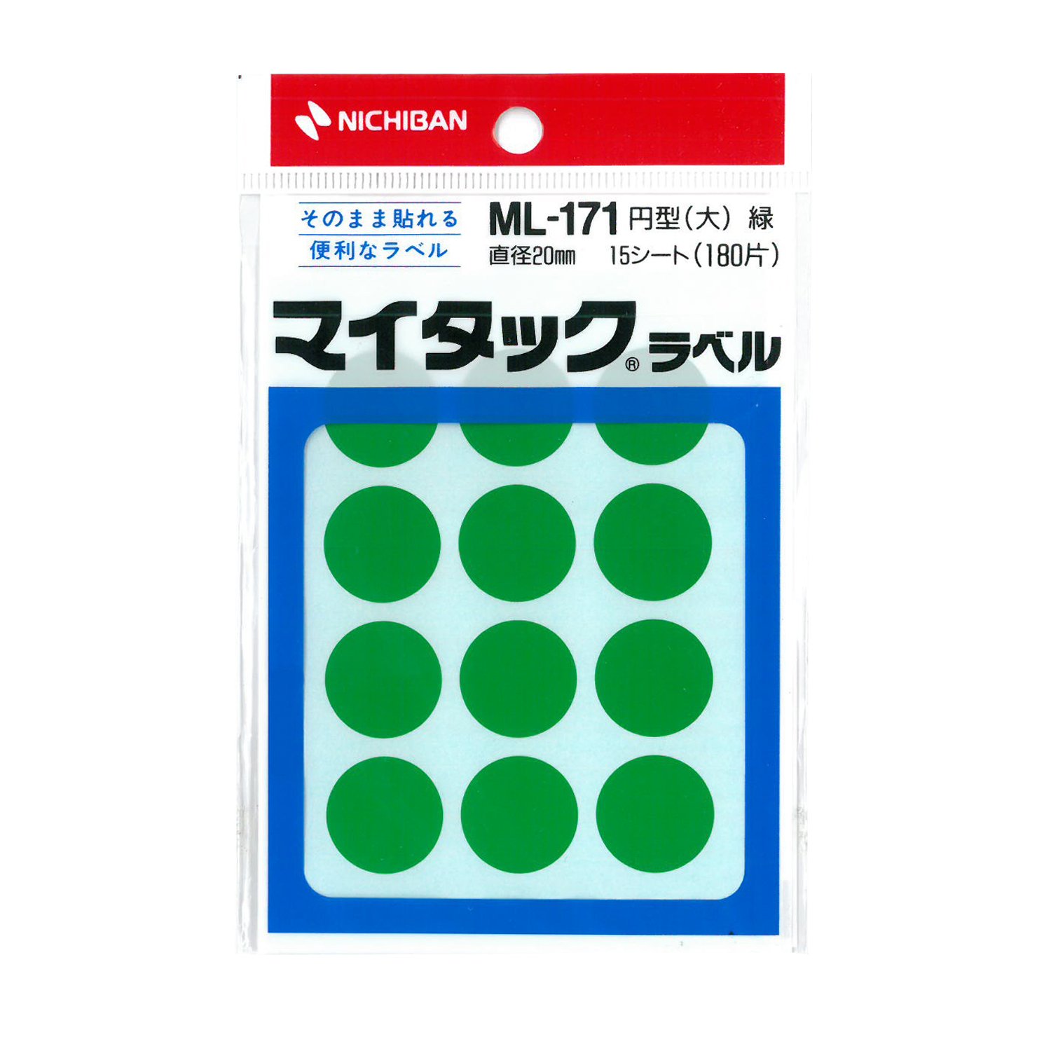 【サイズ】直径20mm 【入数】12片×15シート(180片入) 【基材】上質紙 【粘着剤】アクリル系 【ご注意】プリンタは対応してません。