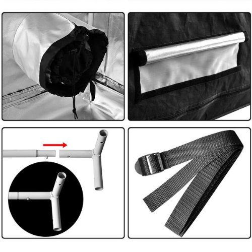 -. Feature : Our 48x48x78" Reflective Grow Tent offers a sturdy frame capable of holding up to 176 lbs for lights, filters, and fans. Its reflective material is non-toxic and will give you 360 degrees of light coverage, so it will not chemically react to the high amou / Unlike most other grow tents, this tent is water proof, meaning if any water is spilt on the ground or any moisture builds up on the walls, all you need to do is simply wipe it off. Most other tents on the market aren't water proof, so after water collect / 4" and 6" exhaust ports surround this tent to give you various options for fan and filter arrangement. Whether you want to pull air in, push air out, or a combination of both, these exhaust vents will come in handy when figuring out where and how you will / The heavy duty oxford cloth that lines the exterior of this tent prevents tearing, while the interior reflective material is tough and effective. Most grow tents have either weak exterior cloth (which results in easy tears and light leaks), or weak reflec / Setup is a breeze. Not only are these poles strong, but they are numbered for simple construction. Just assemble the frame, slip the tent over the frame, and you're ready to grow!