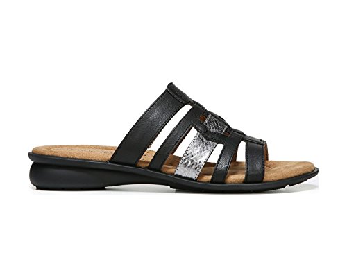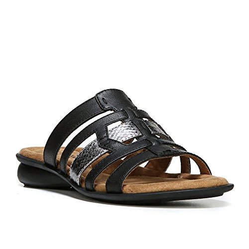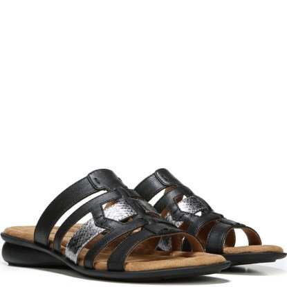 Binding : Apparel Product Description Take a casual look to the next level with these Joliet wedge sandals from NaturalSoul by naturalizer. The All-Thru Comfort System features memory foam, arch support and soft cushioning throughout to surround your feet in ALL DAY comfort. SANDAL FEATURES Backless design Metallic snakeskin accent strap Cushioning arch support Non-slip sole for stability SANDAL CONSTRUCTION Synthetic upper Fabric lining Manmade outsole 0