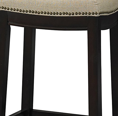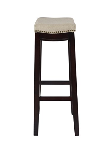 -. Feature : Dark Walnut Finish / Beige Linen Upholstered Top / Nail Head trim adds interest to the stool / Plush cushioned seat / 30" seat height