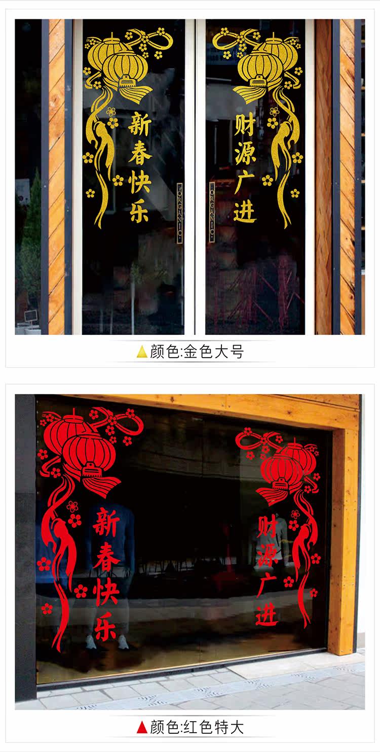 新年元旦新年装饰品橱窗玻璃门贴纸窗花新春快乐财源广进门窗贴纸