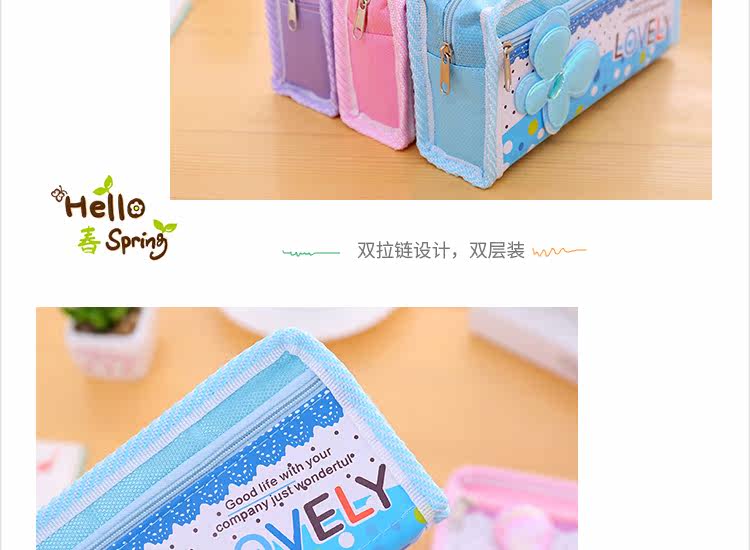 蝴蝶大容量笔袋双拉链女男小学生文具盒学生奖品 简约