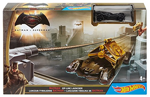 -. Binding : Toy -. Brand : Hot Wheels -. EAN : 0887961320305 -. Feature : This exciting Hot Wheels DC Comics track set assortment has plenty of super hero action and adventure / Zip the new Batman v Superman: Dawn of Justice Batmobile down the wire from his grappling hook gun and onto the streets of Gotham! / Position your Hot Wheels Superman Hot Wheels vehicle at the top of the launcher in the Sky High Takedown Track set / Each set includes an exclusively decorated Hot Wheels vehicle and sets up a mission to defeat villains and save the day! / Carefully aim to take out the Lexcorp helicopters and tower from the top of his sky slide -. IsAdultProduct : 0 -. Label : Mattel -. Manufacturer : Mattel -. Model : DPL88 -. MPN : DPL88 -. PackageQuantity : 1 -. PartNumber : DPL88 -. ProductGroup : Toy -. ProductTypeName : TOYS_AND_GAMES -. Publisher : Mattel -. ReleaseDate : 2016-04-13 -. Studio : Mattel -. Title : Hot Wheels Batman v Superman Dawn of Justice Batman Zipline Launcher Trackset -. UPC : 887961320305 -. Warranty : 1 year warranty against manufacturer defects