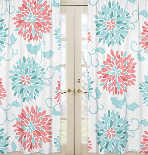 Sweet Jojo Designs 2-Piece Window Treatment Panels for Modern Turquoise and Coral Emma Collection