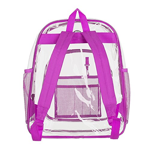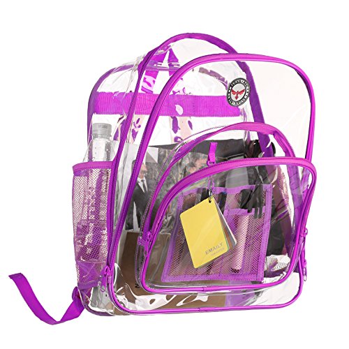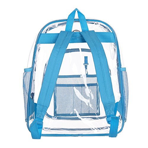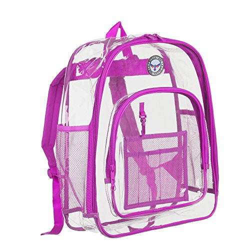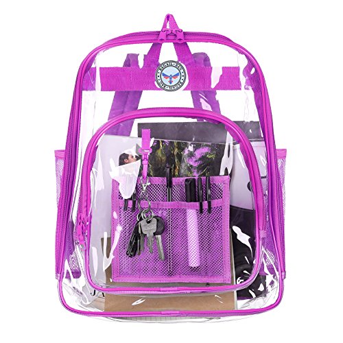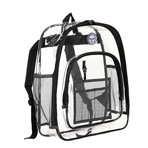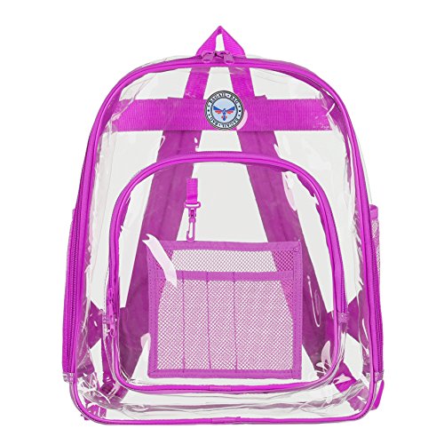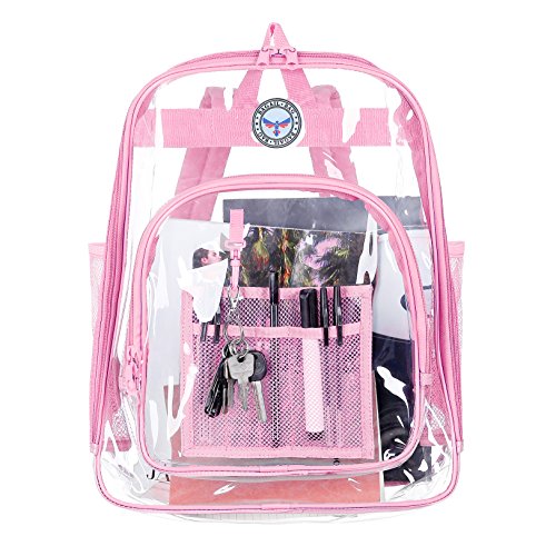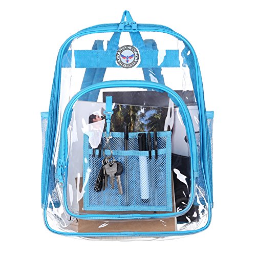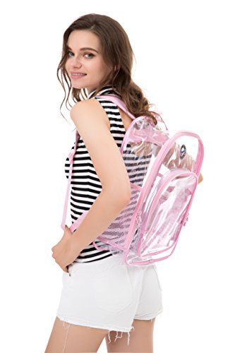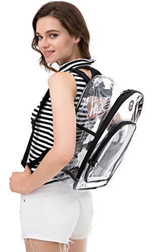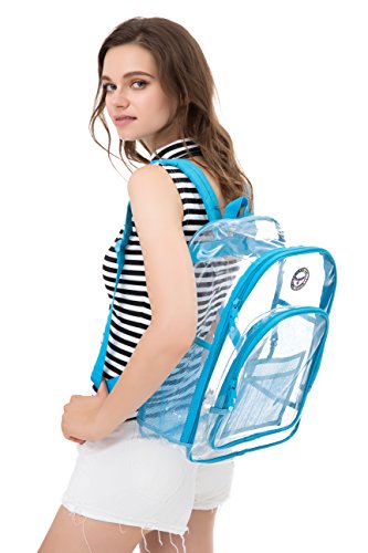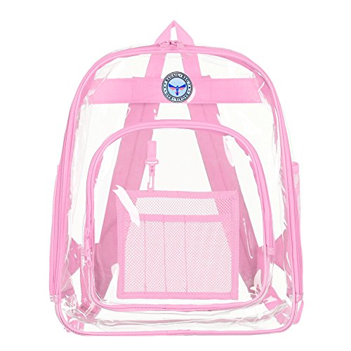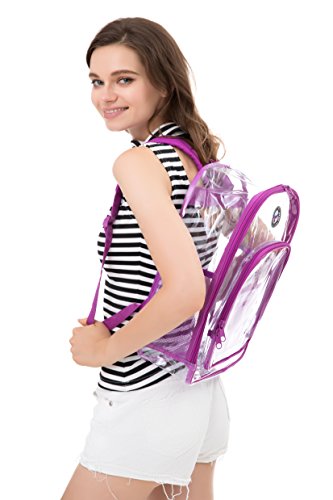 Strong and Dependable: This medium see through backpack is made out of sturdy and rugged ultra clear PVC material, it is strong and durable. Comfortable and Organized: These medium clear back packs have great comfortable padded shoulder straps and also a handle. In additional to a smart, handy front pocket for quick access to important items there are interior pockets to organize all supplies and tech equipment. Stylish and Multipurpose: There are no corners cut when it comes to comfort and style. As a result they make a great choice that complies with rules for mandated security checks. Take it along to school, work or outdoors with these medium clear back packs. Perfect for adults, especially employees and students. Convenient Visual Access: For a student finding a pen or a pencil, eraser and notebooks, it's no hassle. So this small clear backpack gives you 100 percent visibility. You know where things are at a glance. Easy Cleaning: Kids can also have a carefree life as this clear backpack comes with low maintenance. Easy to use and easy to clean. Just wipe it down with soap and water or rinse it under the sink. Hang dry. Also no worries about getting caught in the rain with its waterproof quality PVC. 0