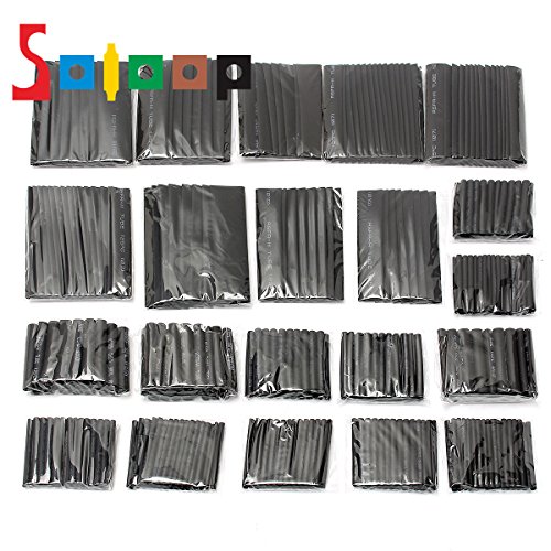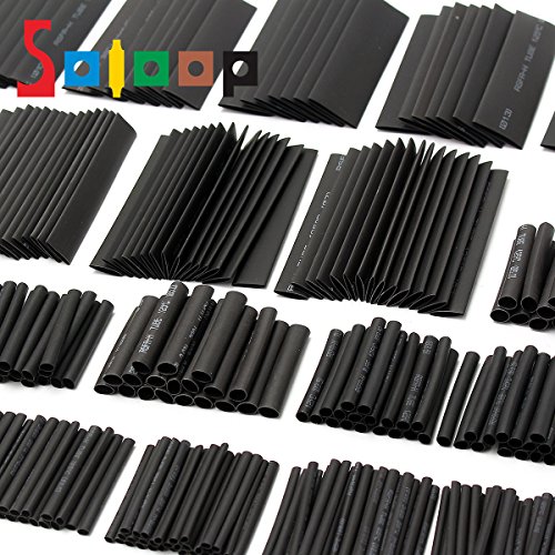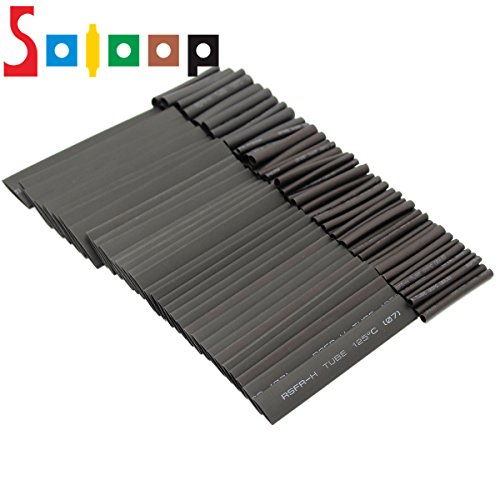 SOLOOP 381Pcs Black Heat Shrink Tube Assortment Wire Wrap Electrical Cable Tubing Sleeving