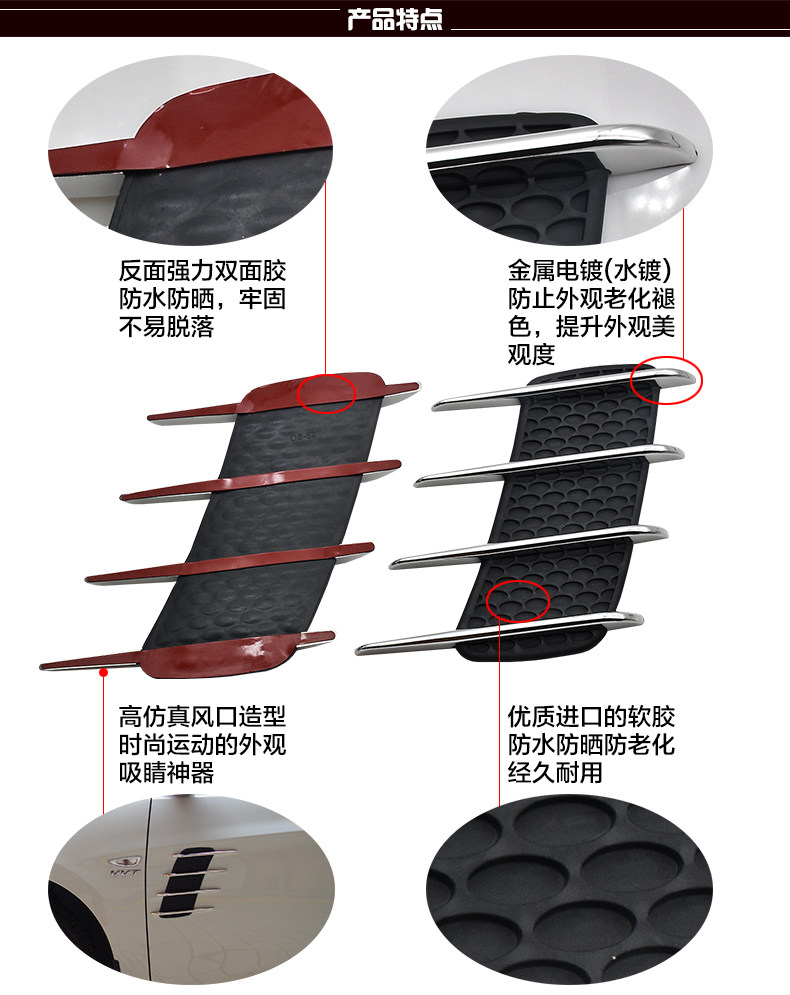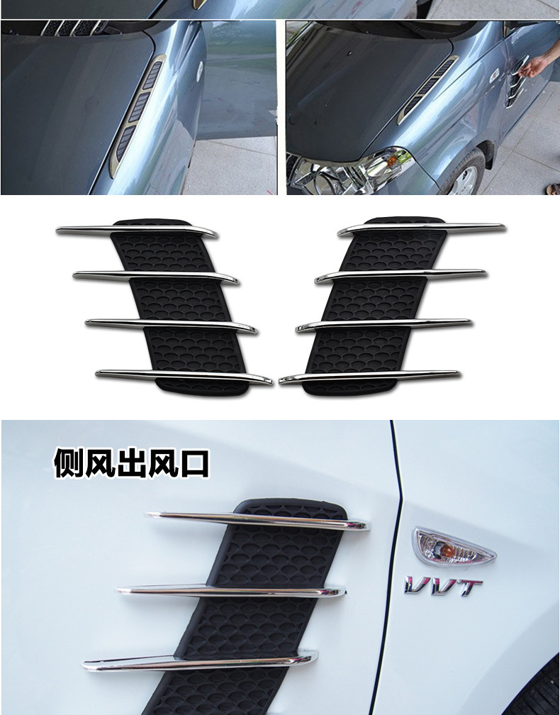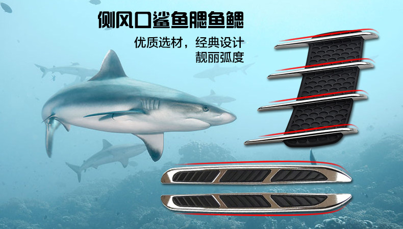 汽车用品改装贴装饰侧假风网装置鲨鱼腮鱼鳃 车身引擎机盖出风口