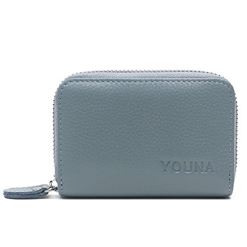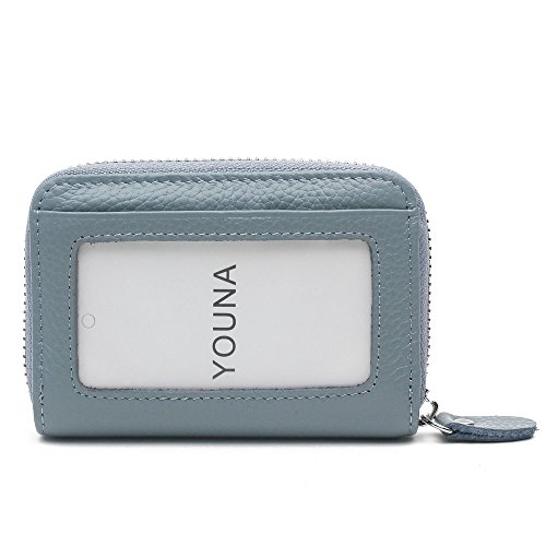 Credit Card Wallet,YOUNA RFID Blocking Genuine Leather Credit Card Holder for Women Light Blue