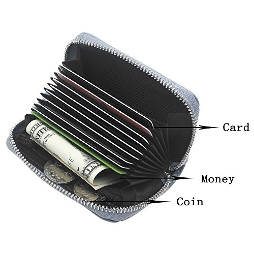 Credit card holder structure:9 credit card slots,2 cash slots ,1 zippered coin pocket and ID window. Each can fit 2 or more cards,big currency pocket. Convenient feature for those who travel.