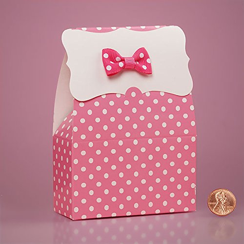 Package of 25 Tab Top Favor Boxes With Bows From Top Drawer (Pink Polka Dot)
