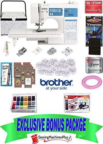 -. Feature : BONUS PACK INCLUDES: Sewingmachinesplus.com 3 Year Platinum Warranty ($50 value), $50 Sewingmachnesplus.com Gift Card ($50 value), 100 Universal Organ Needles ($27.99 value), 20 bobbins ($9.99 value), Low Shank Open Toe Darning Foot ($12.99 value), 1/4" Foot ($11.99 value), Invisible Zipper Foot ($12.95 value), Open Toe Embroidery Foot ($14.99 value), Piping & Sequin Foot ($16.99 value), Madeira Aerofil Polyester 18 Spool Multi-color Thread Kit ($24.99 value) / Singer 130pc Beginners Sewing Kit ($10.99 value), Strap EZ - 2" Wide Strap Multi-pack 1 each: 6", 9", 12" ($11.99 value), Collins Sewing Gauge in Inches & Centimeters ($1.49 value), Pink Bobbin Ring Sew Mate [pink if available, but color may vary depending on stock] ($6.99 value), Black & White Floral Sewing Basket ($39.99 value) / 130 unique built-in stitches, including 8 1-step auto-size buttonholes | Detachable wide table for larger projects / 55 alphanumeric sewing stitches for basic monogramming | Convenient stitch flip chart on front of machine | Large Backlit LCD display with push-button stitch selector | Exceptional feed system - sew on a wide range of fabrics | Variable speed control and start/stop button | Advanced easy threading system, and automatic needle threader | Operation with or without foot controller pedal | Includes 8 quick-change presser feet / Variable speed control and start/stop button | Advanced easy threading system, and automatic needle threader | Operation with or without foot controller pedal | Includes 8 quick-change presser feet | One Sewing Font with 55 Alphanumeric Sewing Stitches for Basic Monogramming