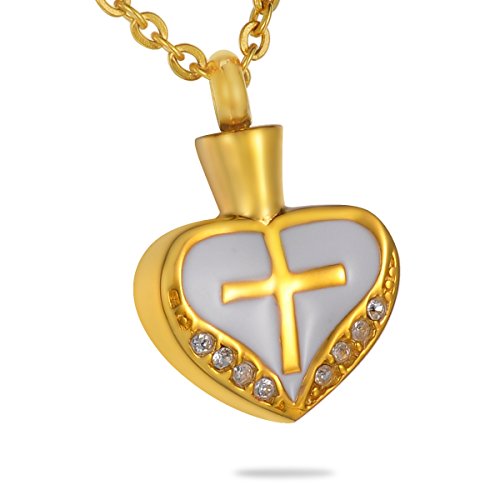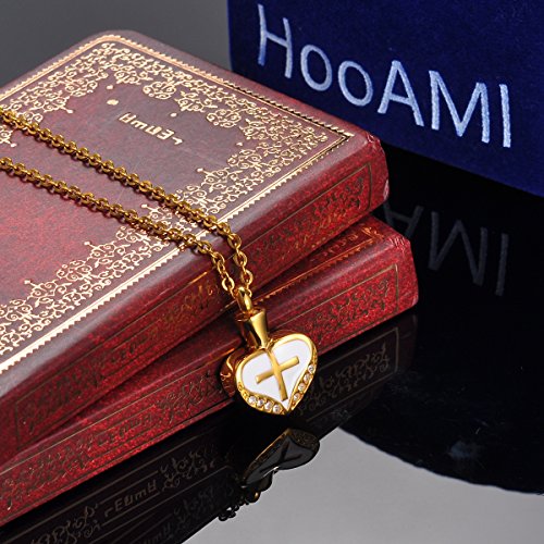 -. Title : HooAMI Diamond Gold Cross Heart Cremation Urn Jewelry Ashes Necklace