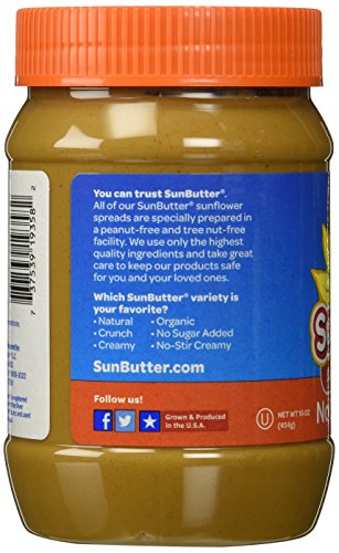 SunButter Sunbutter Sunflower Spread - No Sugar Added 16 oz (454 grams) Jar Gluten Free, Non-GMO Brand : SunButter MPN(PartNumber) : 132585 EAN : 0737539193582 Product Dimensions(LxWxH) : 8x8x13cm ; 499 g Package Dimensions(LxWxH) : 13x8x8cm ; 499 g