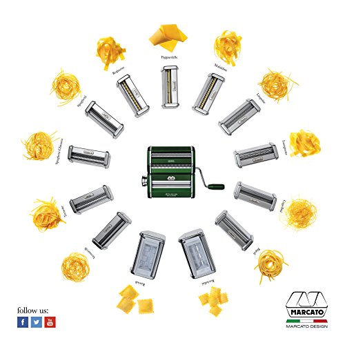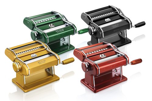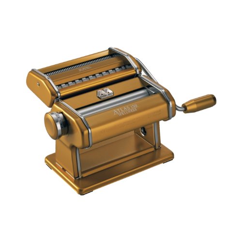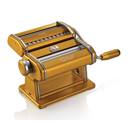 Studio : Marcato Publisher : Marcato Binding : Kitchen Product Description Designer Deluxe Atlas Wellness Pasta Machine - GoldsWow. The New Deluxe Designer Colors Line By Atlas Marcato Is Simply Stunning. Everything You Have Come To Expect From Atlas And A Little More: A Superb Italian Design; Anodized Aluminum Nickel Free Chrome Free Deluxe Handles And Clamps Also In Anodized Matching Colors Patented Wellness Rollers Made Of Light Alloy Which Guarantee There Will Be Absolutely No Residue Of Any Metal In Your Pasta. The Pasta You Prepare With The Atlas Wellness Models Will Be Absolutely Pure; They Feature A Raised Metal Logo Plate; Only The Finest Materials Are Used With Excellent Workmanship. This Unit Will Make 4 Types Of Pasta: Flat Roller Unit For Lasagna Cutter For Fettuccine- Tagliatelle Special Spaghetti Cutter With Which You Can Make Round Spaghetti 2Mm. With A Thicker Dough Sheet And A Flat Noodle- Tagliolini 1.5Mm Flat If You Use A Thin Dough Sheet. All Attachments To The Regular Atlas 150 Will Fit This Machine. All Components Parts And Assembly Entirely Made In Italy. 0