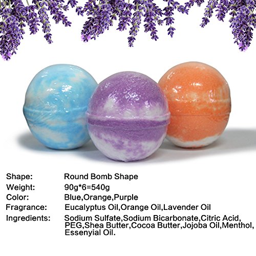 - 🌹3 KINDS SCENTS FOR CHOOSING - Each set of 6 bath bombs is great balanced with lavender(2pcs) ,orange(2pcs) and eucalyptus(2pcs) essential oil, you have more choice to meet your specific needs depending on your mood.