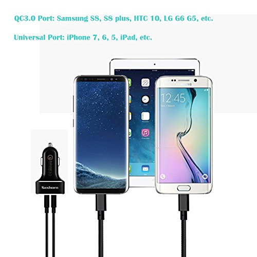 Quick Charge 3.0 Car Charger for Samsung Galaxy S8/S8 Plus, LG G6/G5, HTC 10 with 3.3ft USB Type C Cord