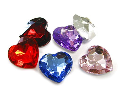 Linpeng 27mm Assorted Colors Faceted Heart Acrylic Gems- No.Y - Approx. 6 Pcs/Pack