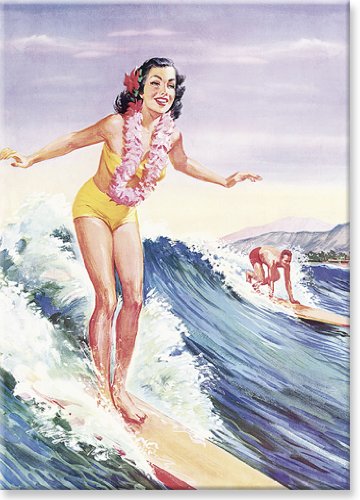 Hawaiian Art Collectible Refrigerator Magnet - Libby’s Hawaii - Surfer Girl