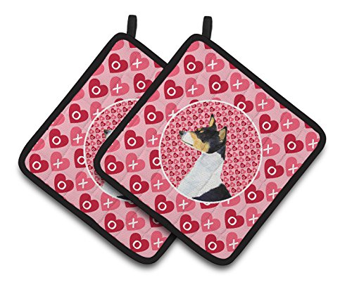 Caroline's Treasures Basenji Hearts Love & Valentine's Day Portrait Pair of Pot Holders SS4514PTHD, 7.5HX7.5W, Multicolor