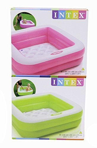 -. Brand : INTEX -. Color : Red -. EAN : 0627474174961 -. Feature : A soft inflatable floor allows for gentle play. / Size 85cm x 85cm x 23cm (33.5" x 33.5" x 9"). / Suitable for kids ages 1 - 3 years. / Available in either Pink or Green. / Repair patch included. -. Label : Intex -. Manufacturer : Intex -. ProductGroup : Toy -. ProductTypeName : OUTDOOR_LIVING -. Publisher : Intex -. Studio : Intex -. Title : Intex Kids Play Box Inflatable Swimming Pool -. UPC : 627474174961
