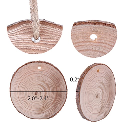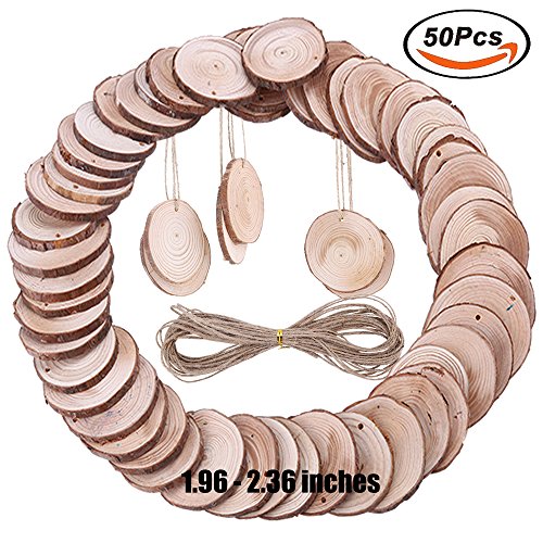 50 Pieces Wood Slices with holes NaturaL Unfinished Predrilled DIY Round Discs ornaments Tree Bark Wooden Circles with 33 Feet Natural Jute Twine Holes Round Log Discs 1.96 Inch - 2.36 Inch